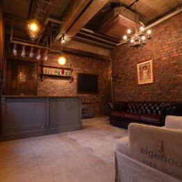 程よい明るさの落ち着いた空間。レンガに囲まれた、まるでバーにいるような雰囲気で撮影できるスペース。お子様の大人っぽい一面を映します。